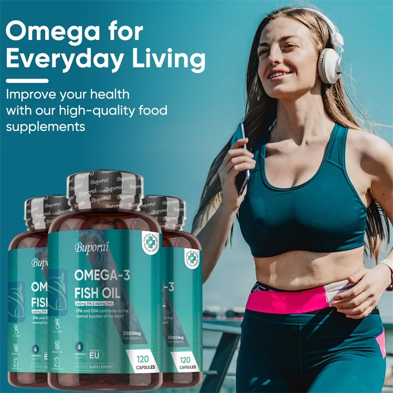 OMEGA 3 2000 mg Softgels: Want to add omegas to your daily routine? Buporai fish oil softgels provide a convenient option. Each serving contains 2000 mg of fish oil, enriched with EPA (eicosapentaenoic acid) and DHA (docosahexaenoic acid), forming a balanced nutritional complex.